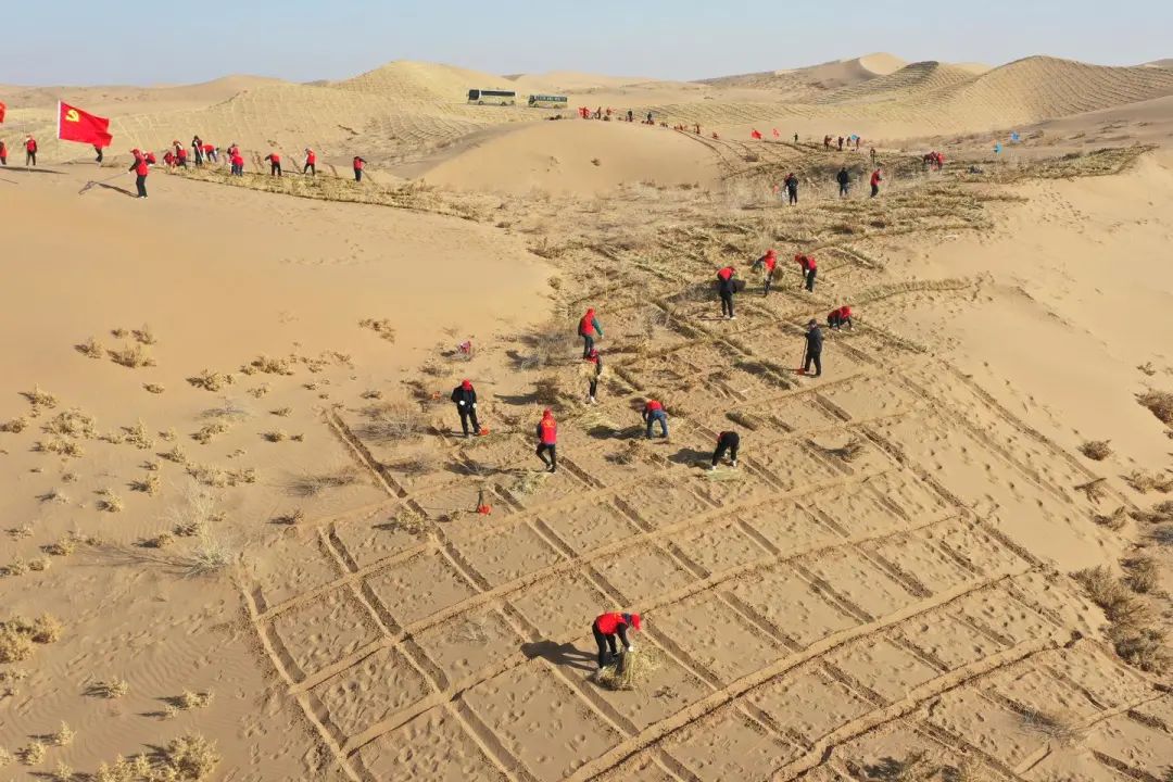一個武威人,半個治沙人。每年春秋季節(jié),一支支義務壓沙隊伍向沙漠腹地挺進,大片草方格沙障從無到有漸次鋪開,從腳下向沙漠深處延伸,廣袤的沙漠如同披上了金色的鎧甲。近年來,武威市牢固樹立綠水青山就是金山銀山的理念,堅定不移走生態(tài)優(yōu)先、綠色發(fā)展之路,科學布局“南護水源、中保綠洲、北固風沙”,持續(xù)大規(guī)模開展國土綠化和防沙治沙,多途徑增加林草資源總量,加快推進生態(tài)大市建設。